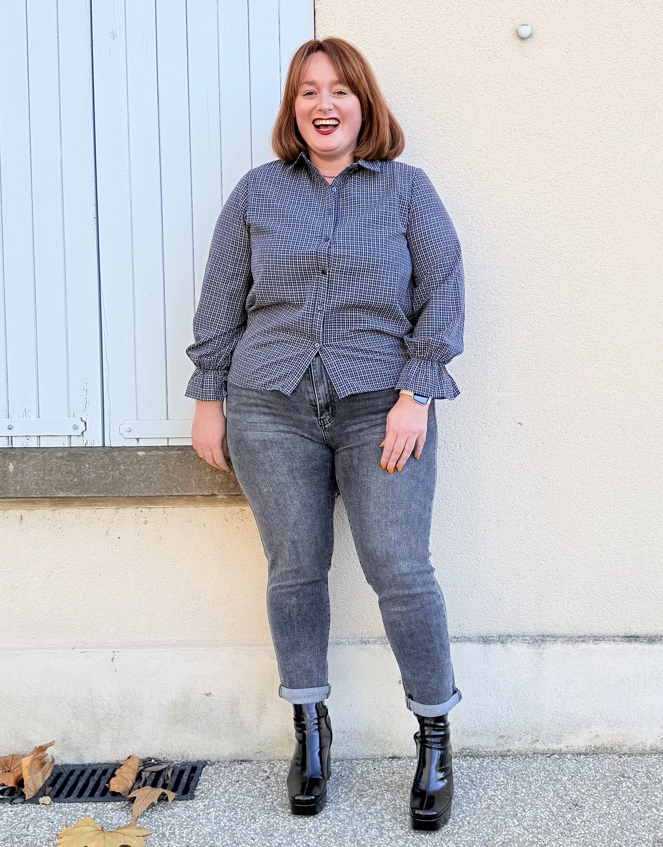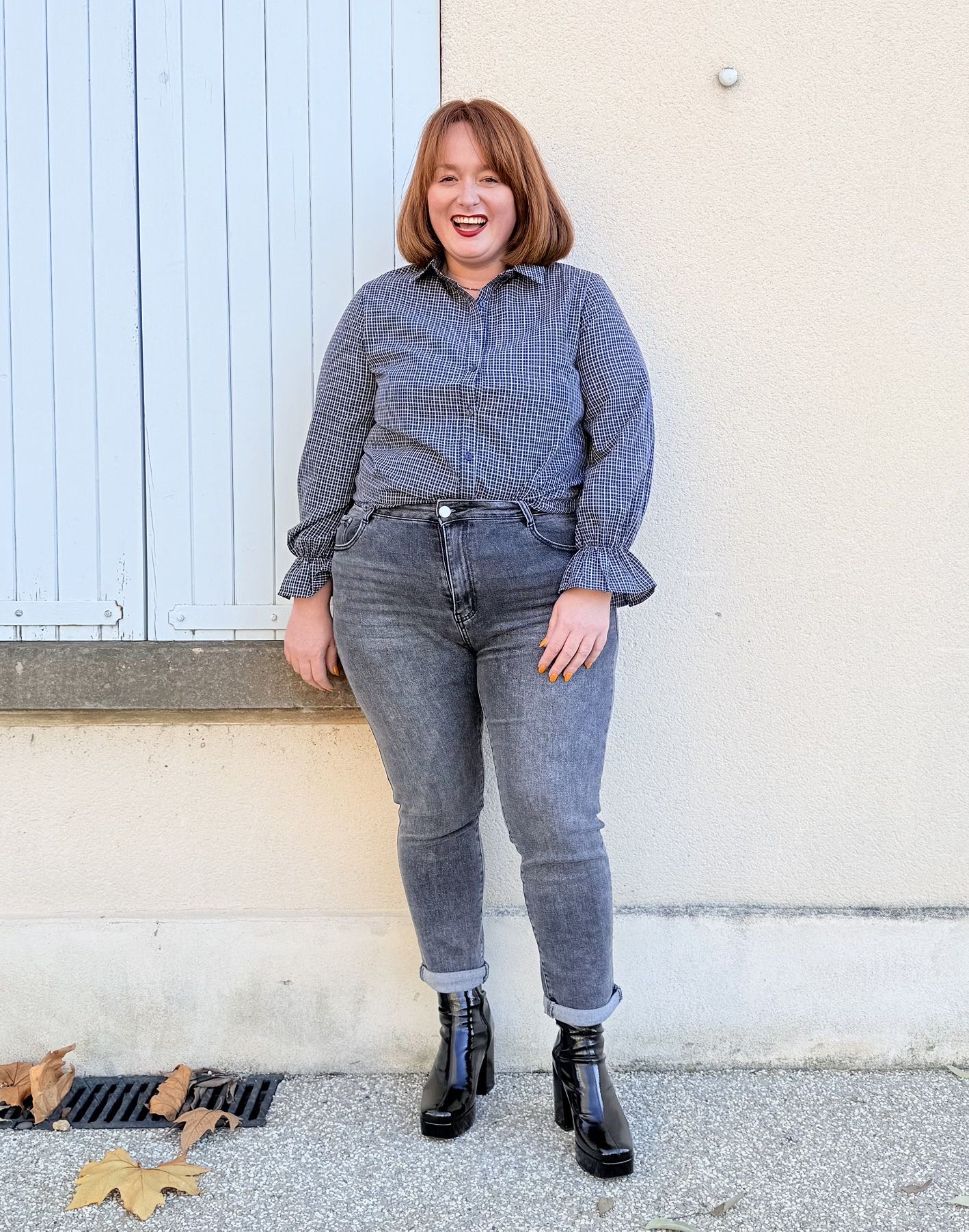 Marion porte la taille 48/50 qui est sa taille habituelle et mesure 1m65.