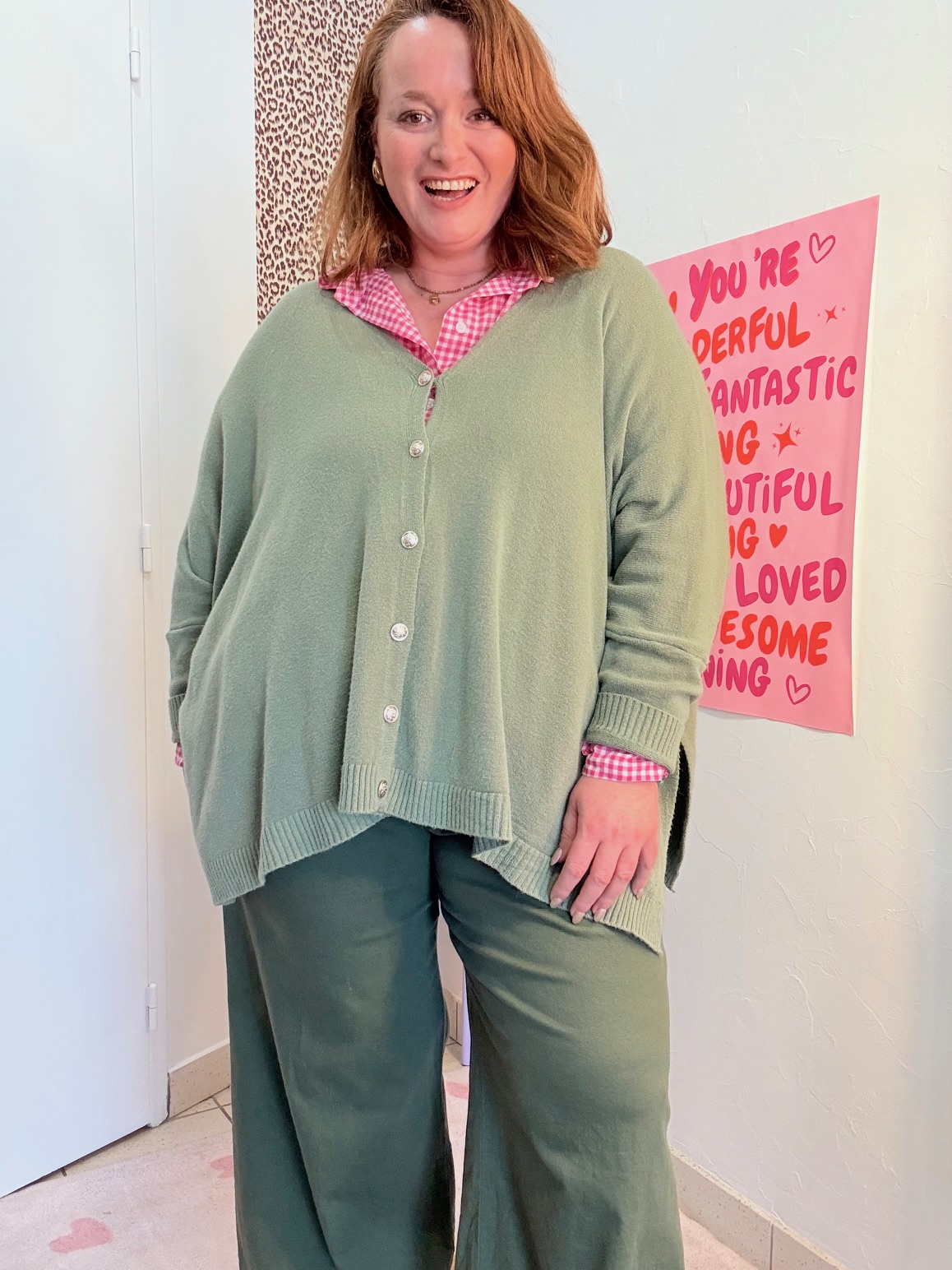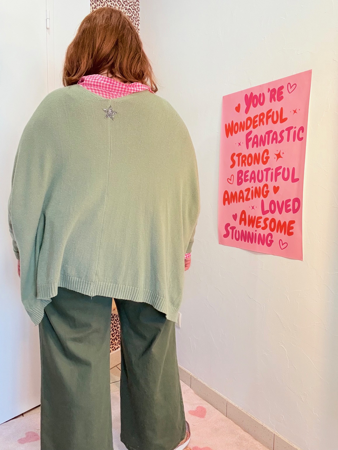 Le gilet Bejma grande taille a un esprit bohème, il est oversize, hyper doux, avec une étoile dans le dos.