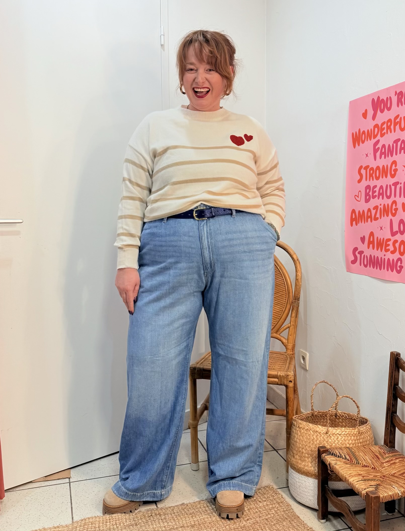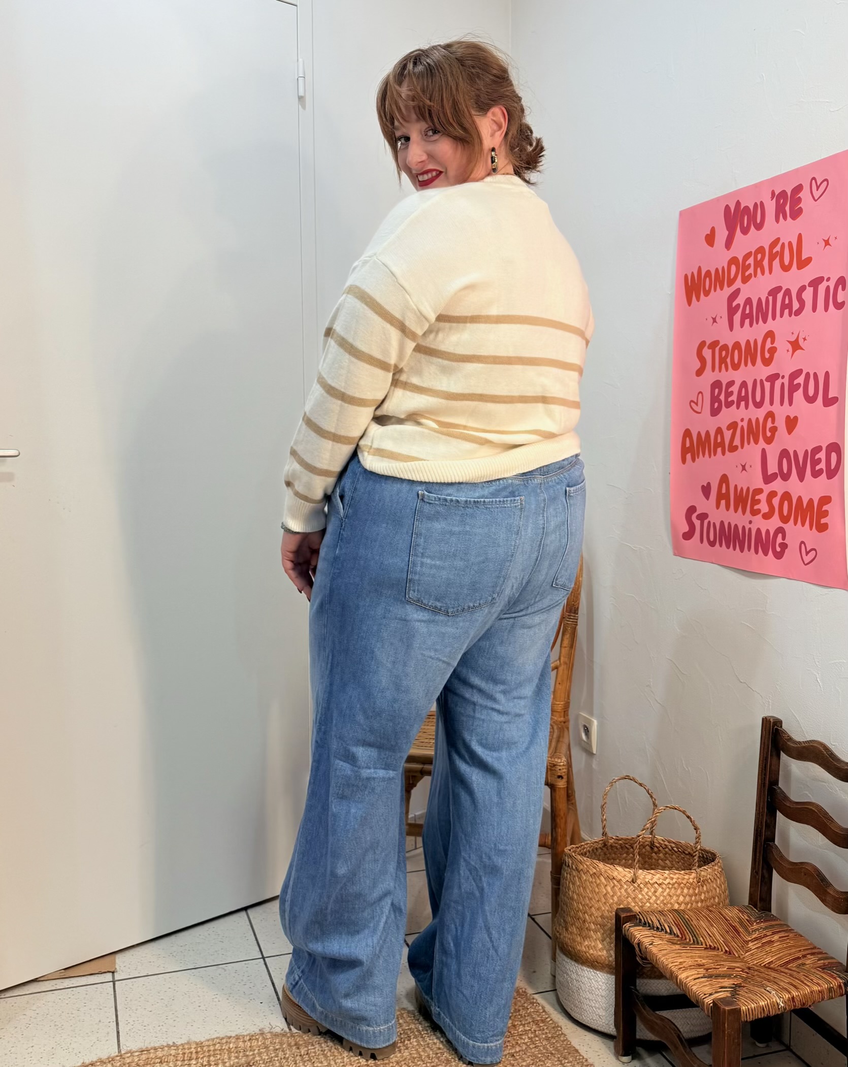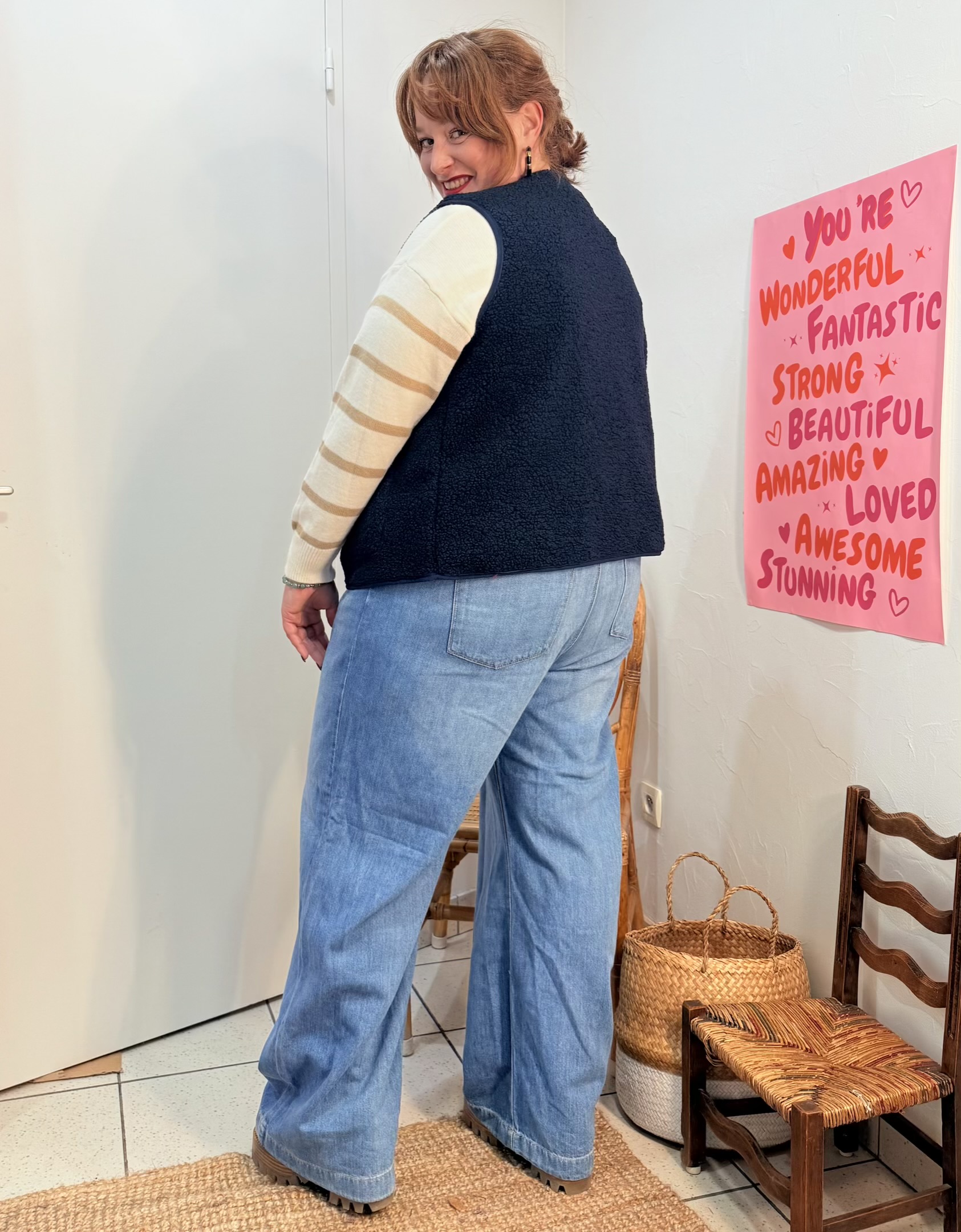 Marion porte la taille 50 pour un effet loose, pour son 48/50.