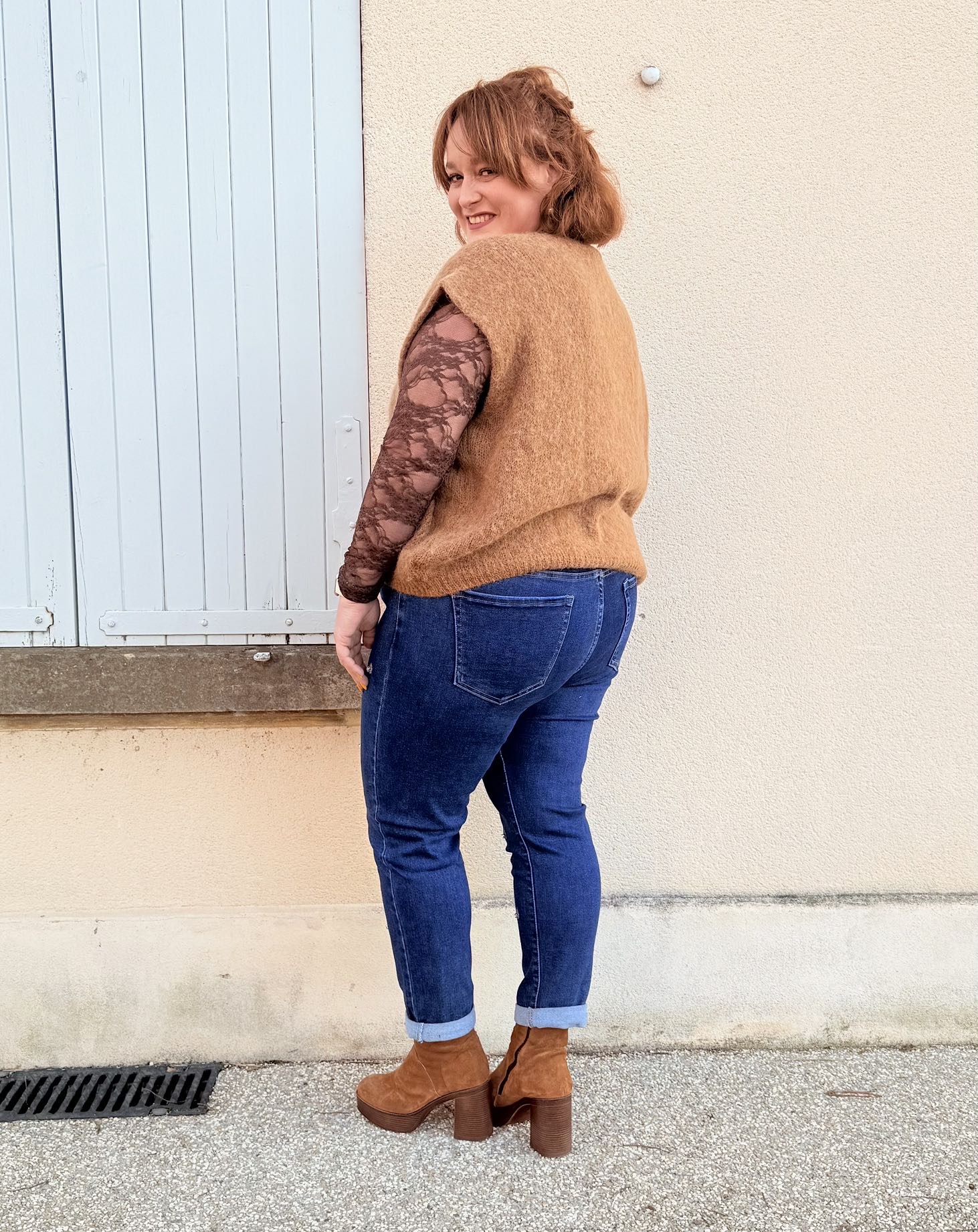 Marion fait habituellement du 48/50, porte la taille 48 et mesure 1m65.