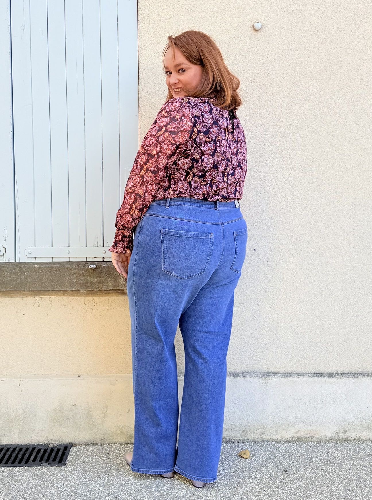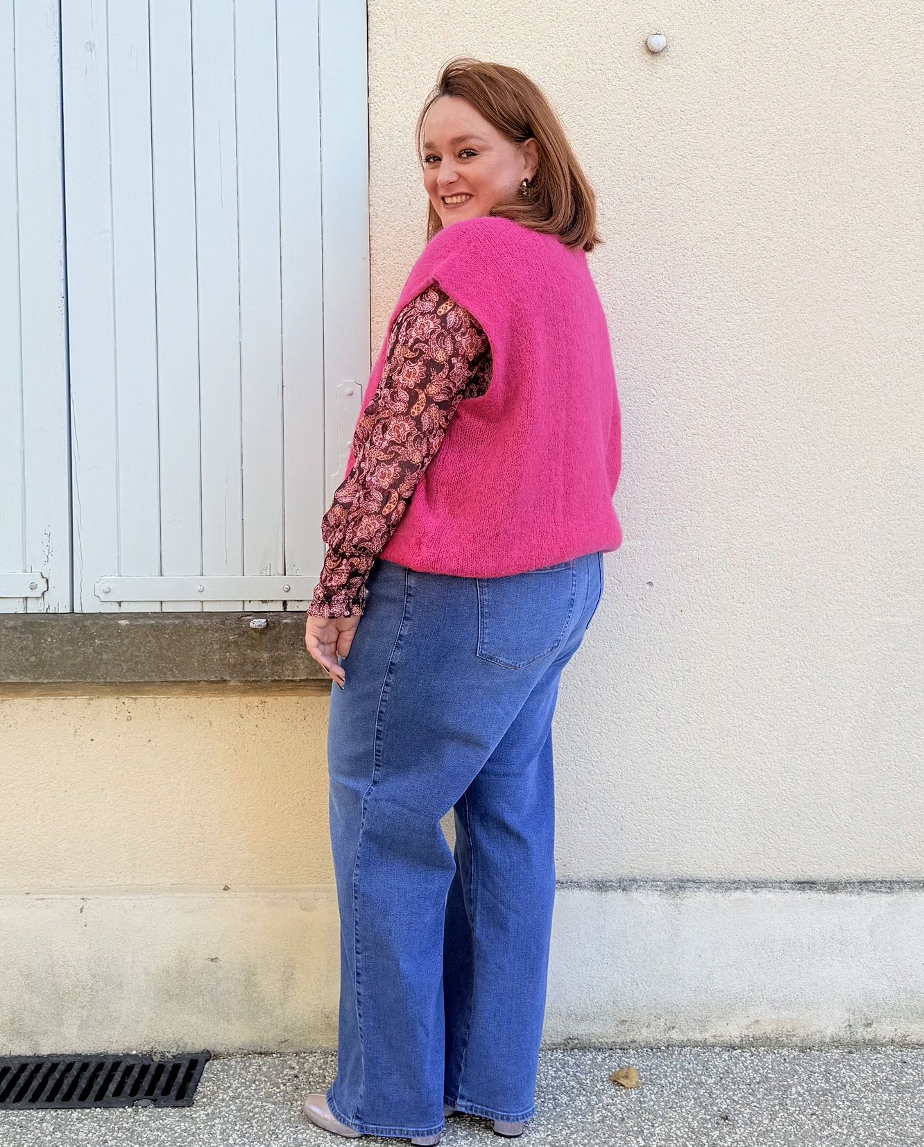 Marion porte la taille 50 pour un effet plus loose et mesure 1m65.