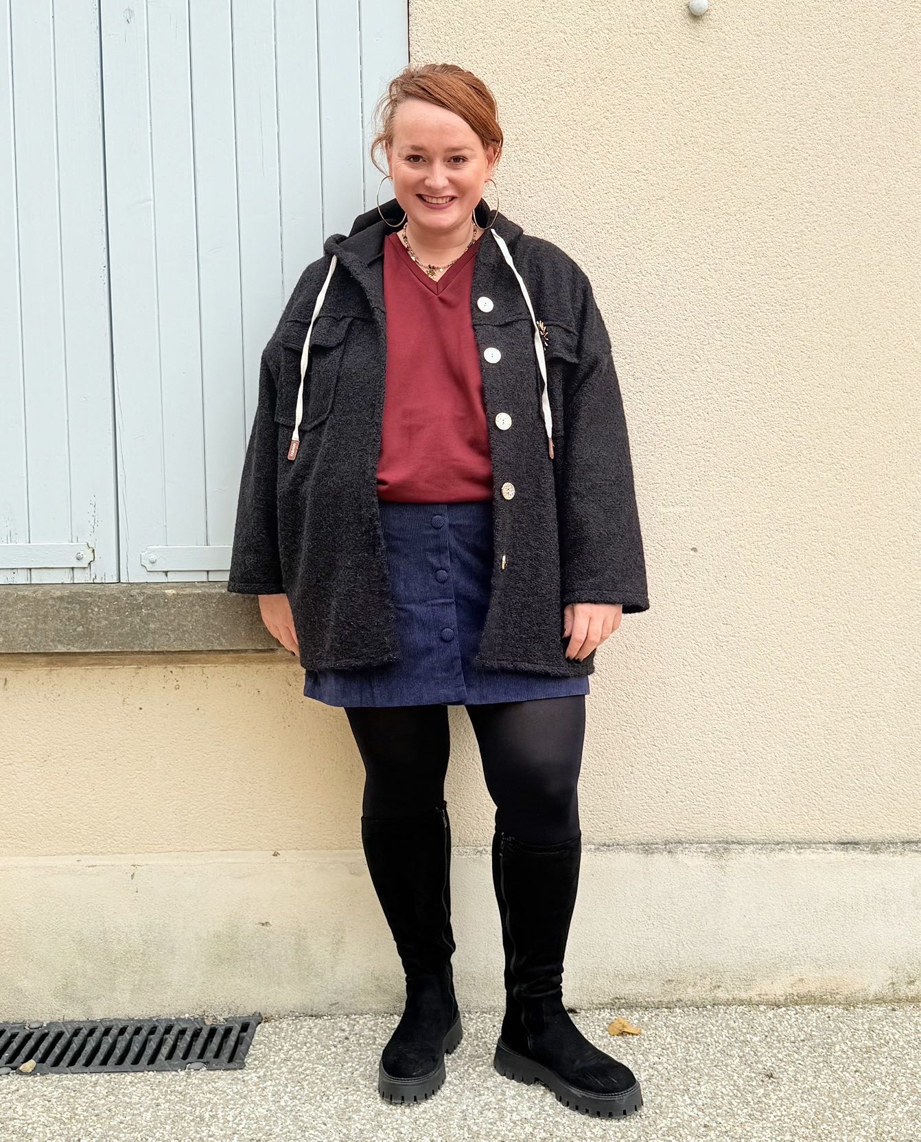 Marion porte sa taille habituelle le 48/50 et mesure 1m65.