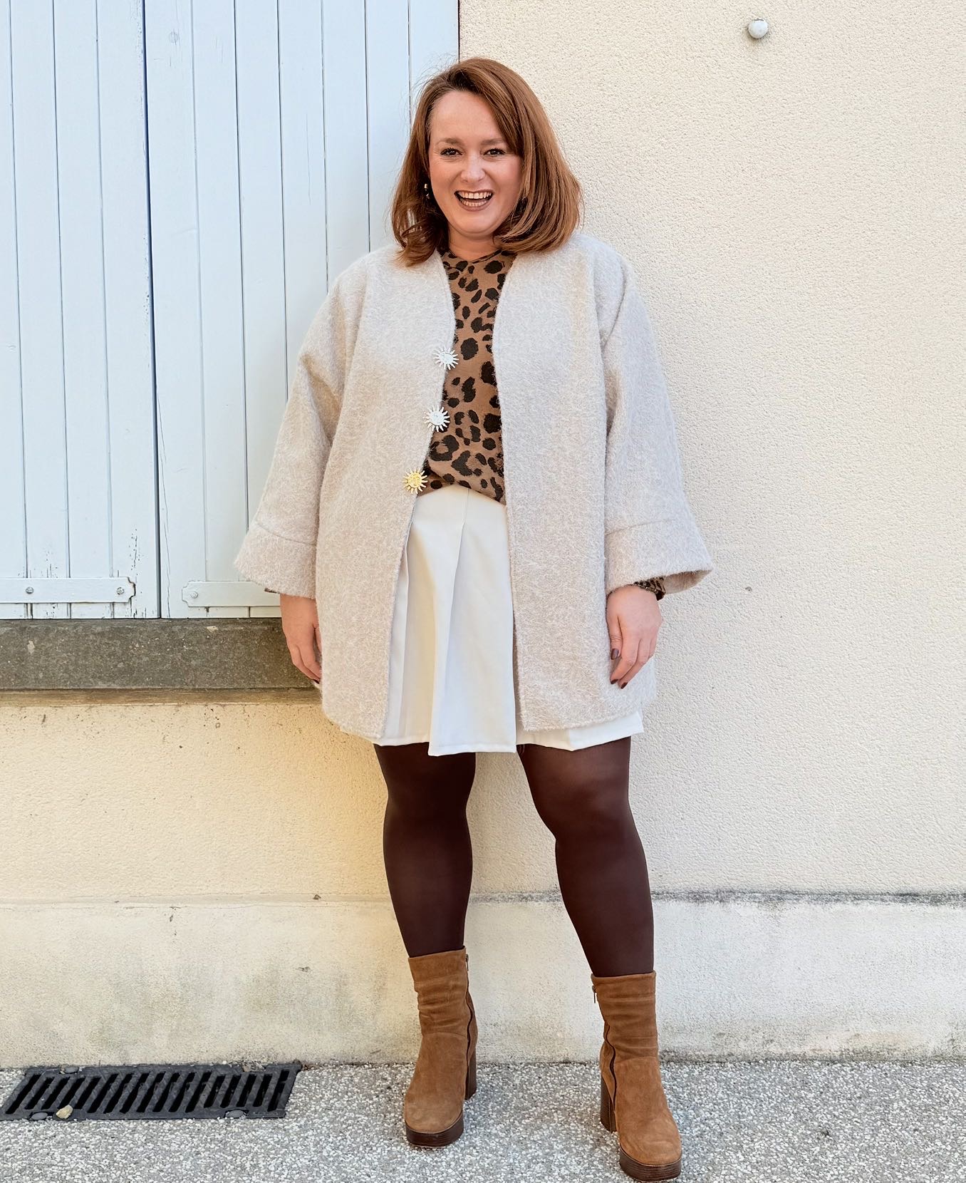 Marion porte la taille 50/52 pour son 48/50 habituel pour plus d’aisance aux hanches.
