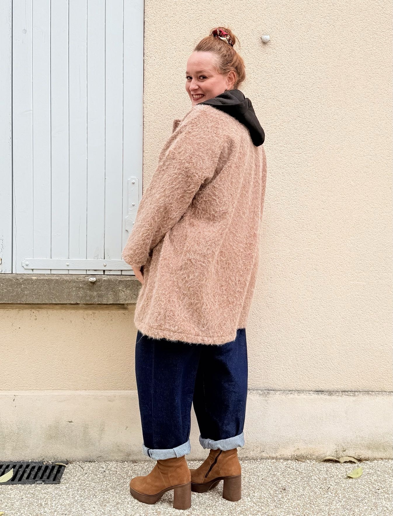 Le manteau Charlotte grande taille est douillet, avec des poches, il a une capuche et se ferme avec des boutons.