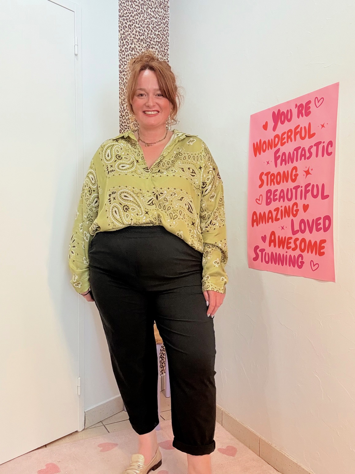 Le pantalon Edmond grande taille est super confortable, avec sa coupe ballon et son élastique à la taille.