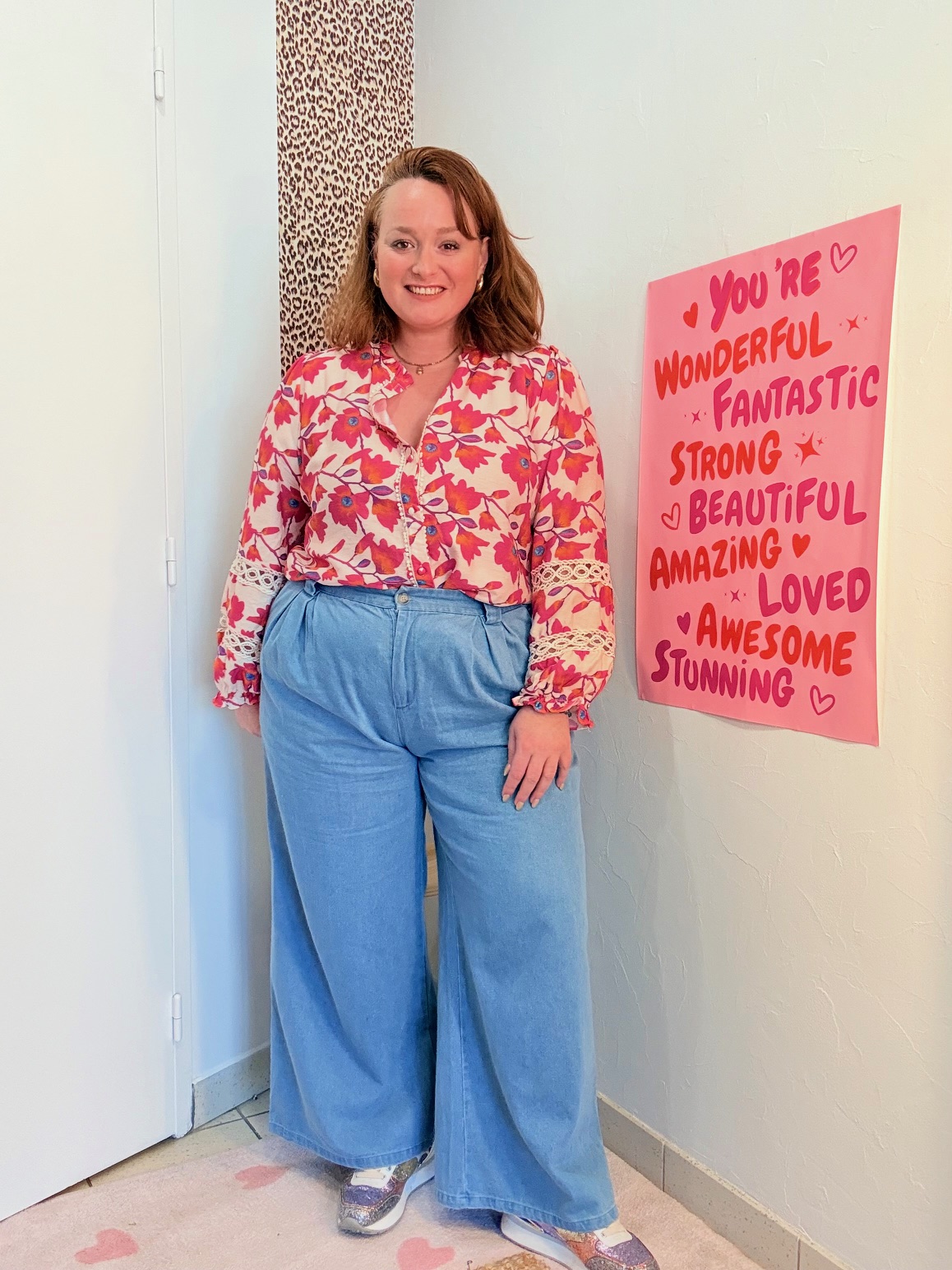 Le Jean Pierre grande taille a une coupe large, des poches, un élastique à la taille et est vraiment très confortable.