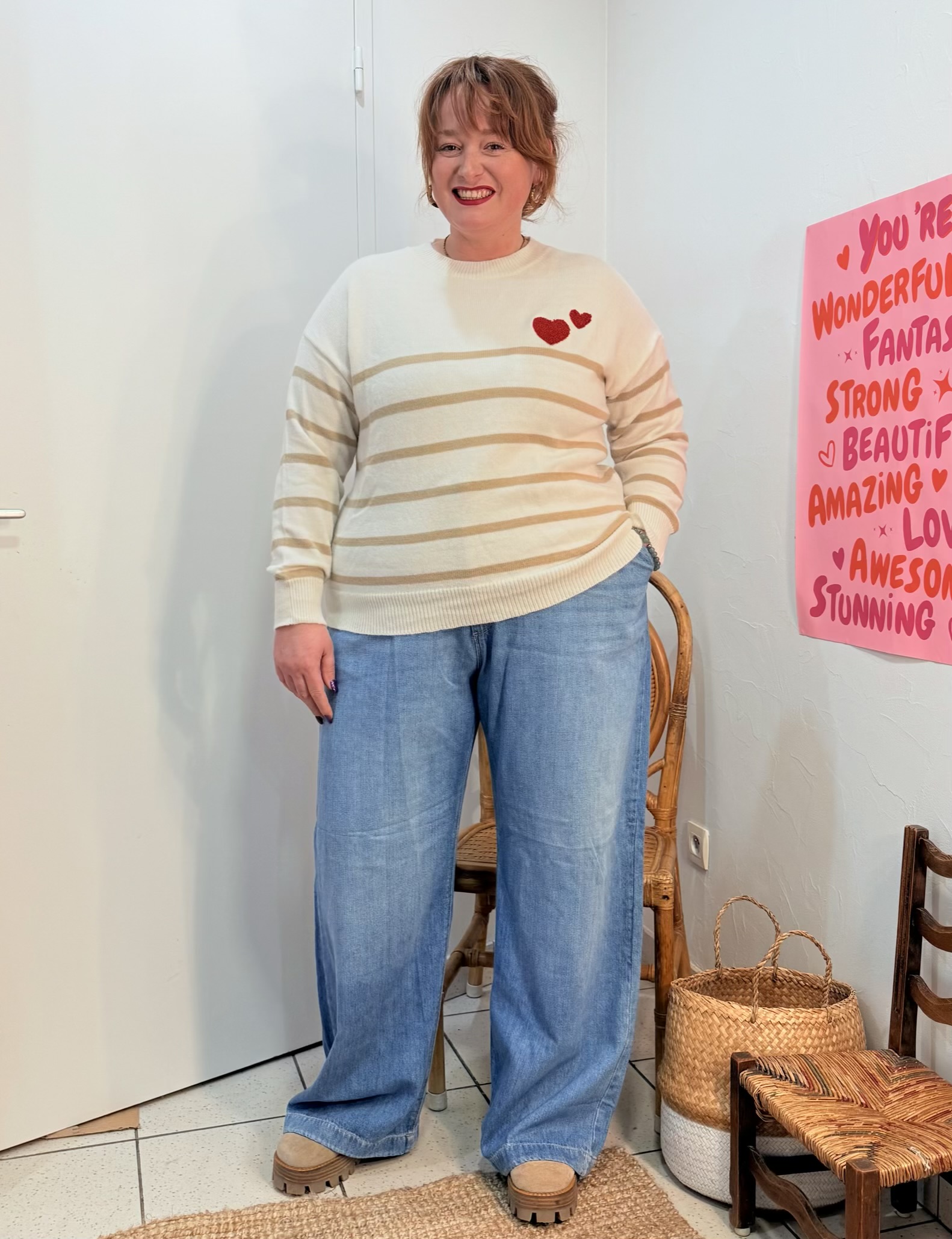 Le pull Morlaix grande taille est une marinière avec deux cœurs sur l’avant, elle est douce et super confortable.