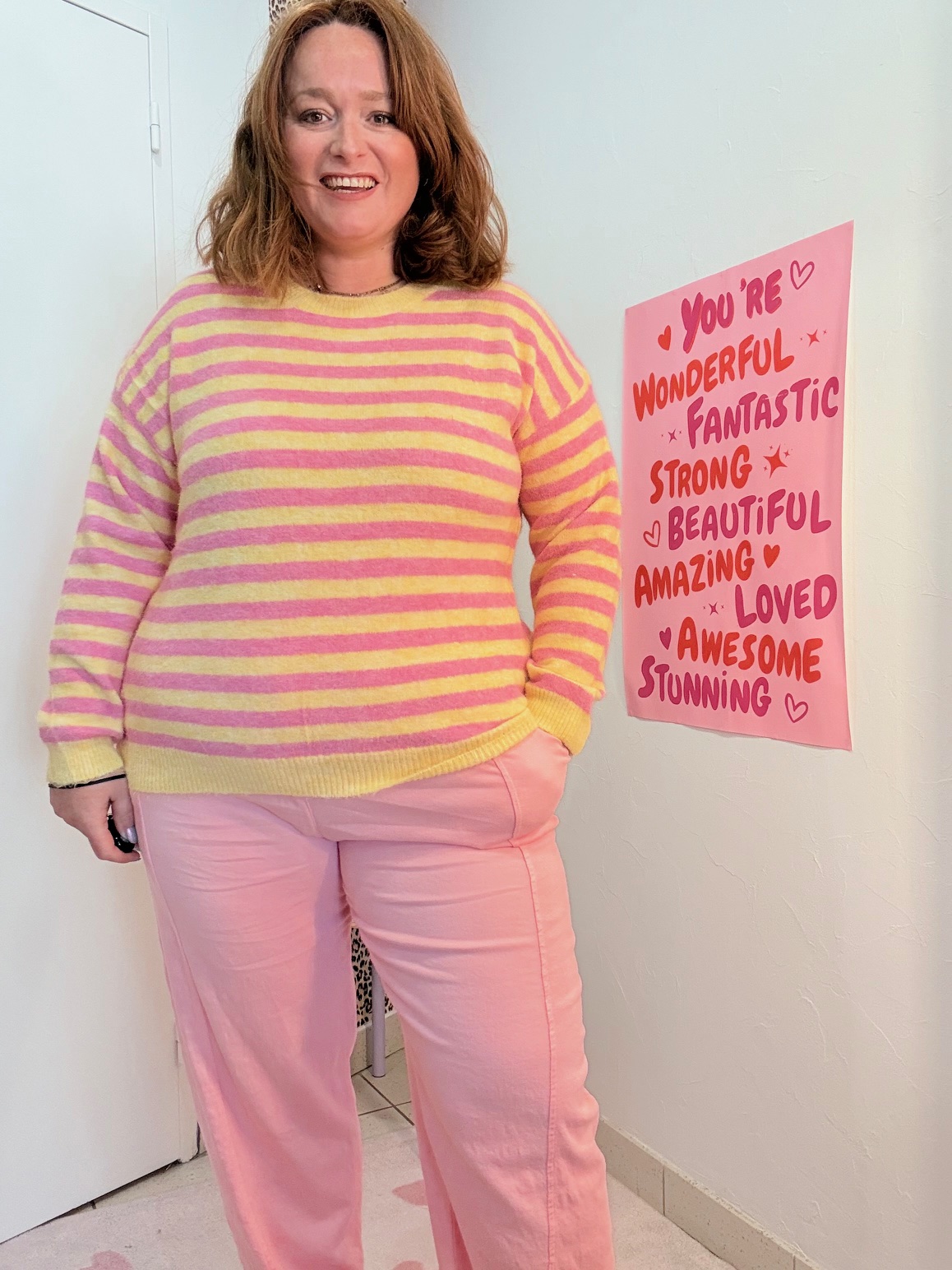 Le pull Limone grande taille est rayé, il est tout moelleux et des couleurs bien peps.
