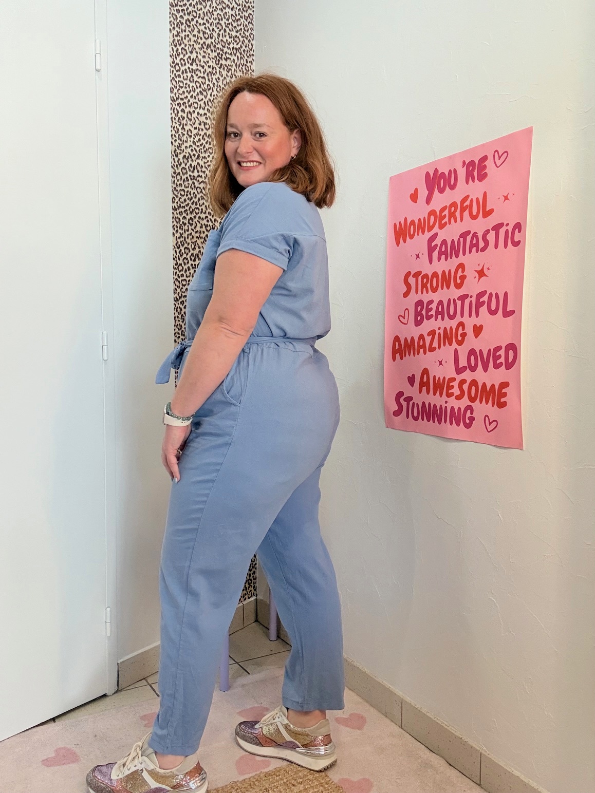 Marion porte la taille 46/48 pour son 48 et mesure 1m65.