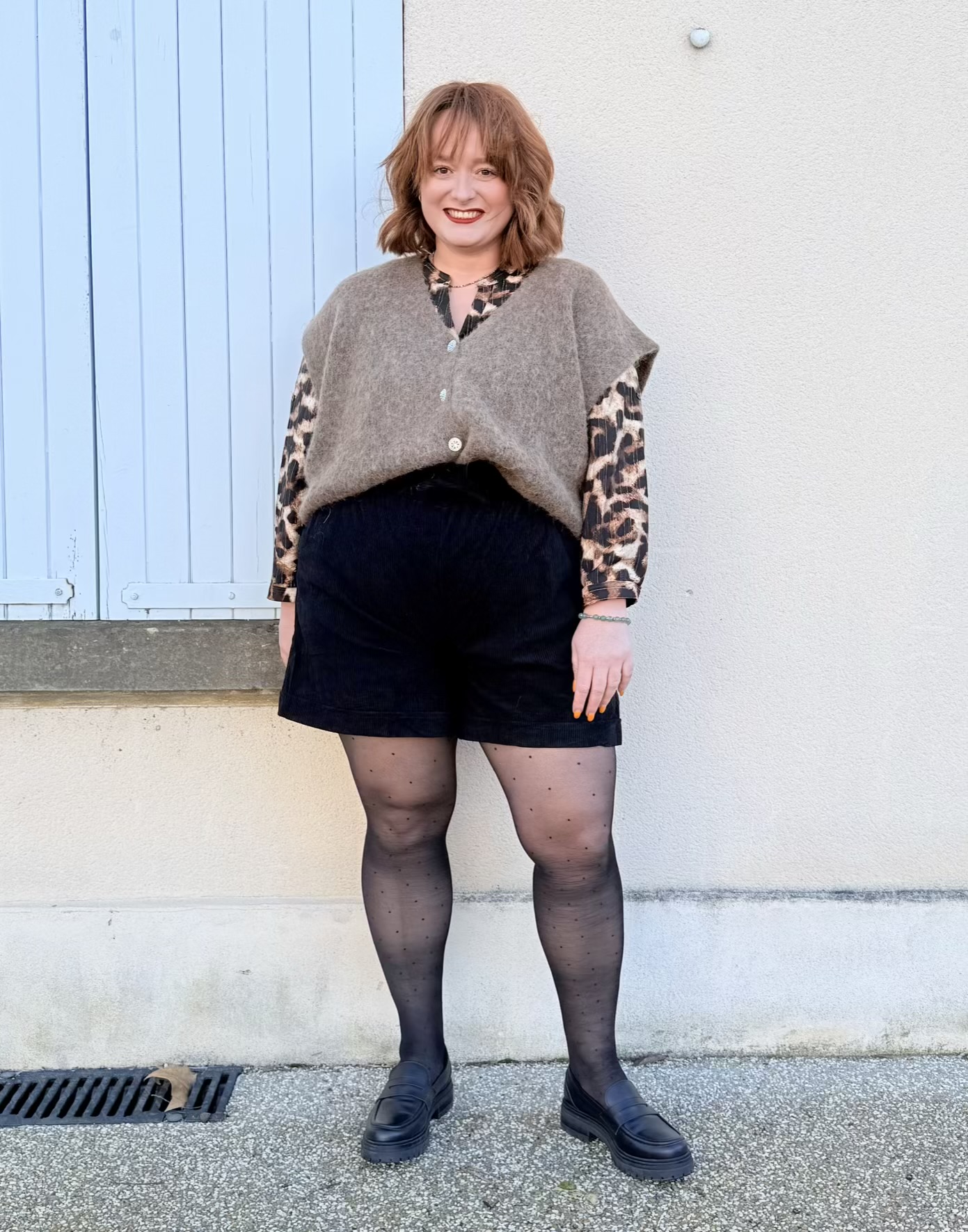 Le short Elise grande taille, un combo de douceur et chaleur grâce au velours. Vous pourrez l’associer avec la blouse Maria pour un look d’automne.