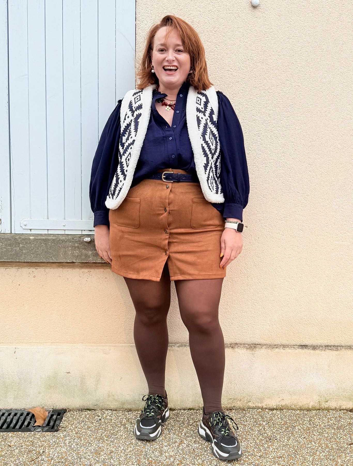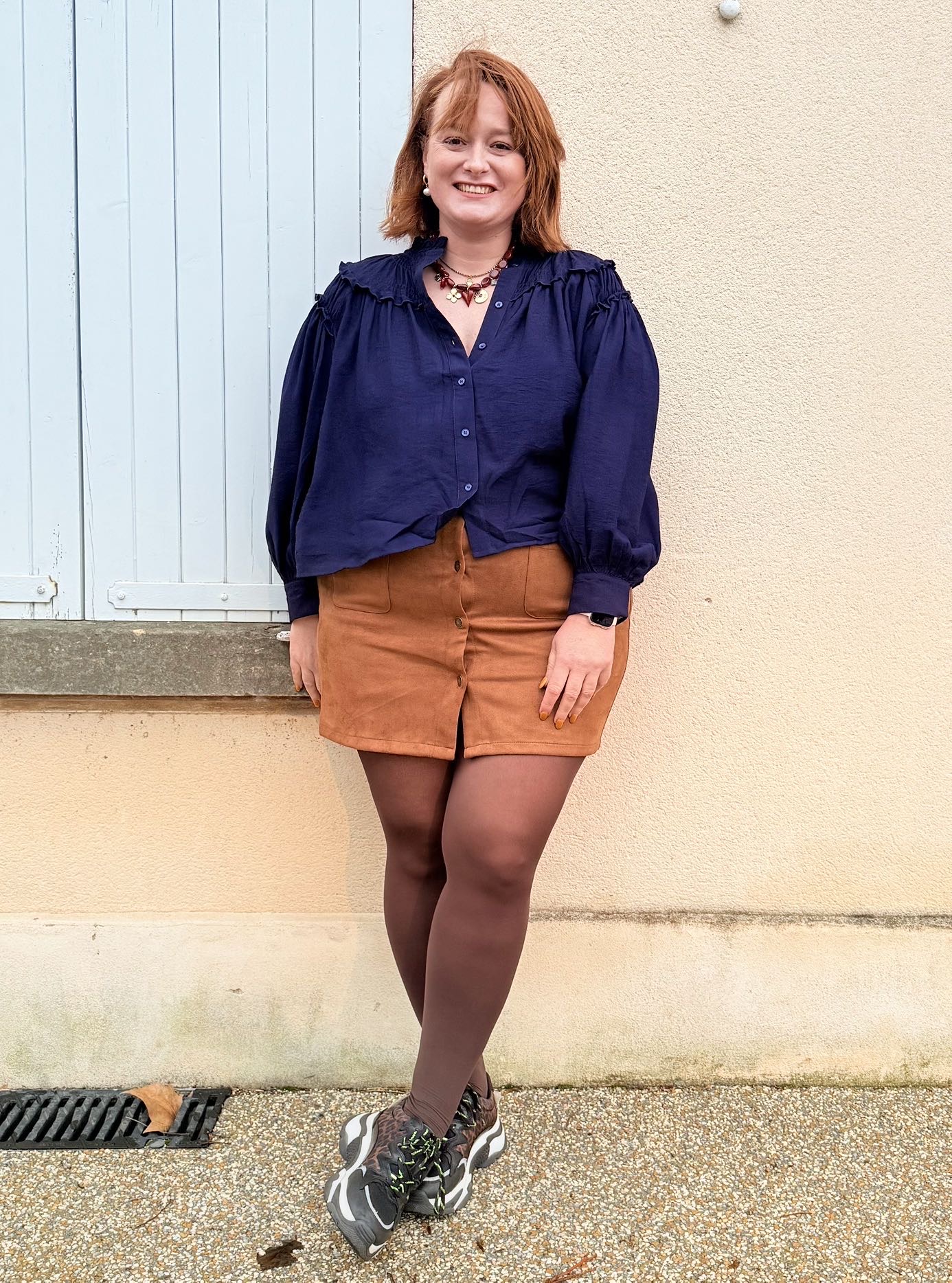 Marion porte sa taille habituelle 48/50 et mesure 1m65.