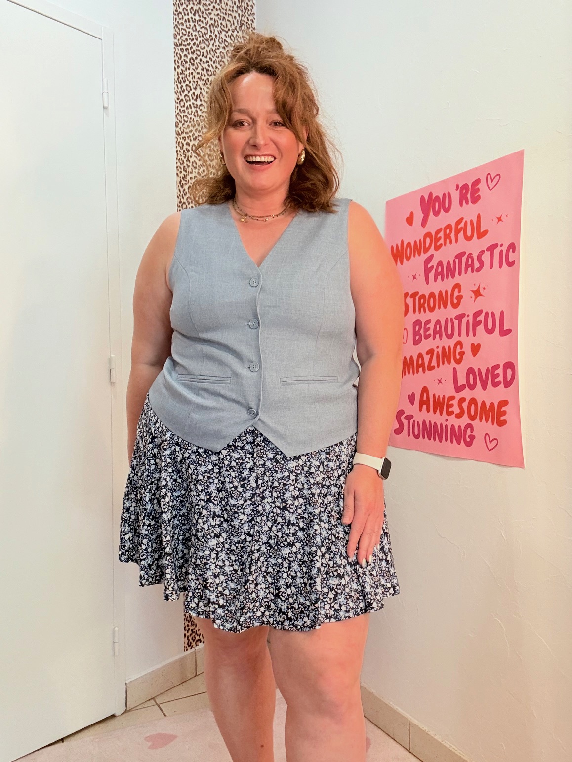 Marion porte la taille 46 pour son 48 et elle mesure 1m65.